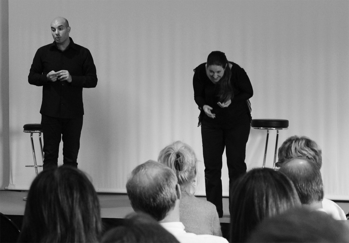Des comédiens suivent et participent à votre évènement / convention. En fin de session et avant le mot de clôture officiel, ils prennent 10 à 20 minutes pour restituer ce qu’ils ont pu voir. Immanquablement, l’audience pourra en rire car nous jouons sur l’autodérision. Les anecdotes et évènements imprévisibles de la journée seront capturés, la vie des participants pendant la journée esquissée et le fond des thématiques revu, critiqué et humanisé par notre “œil de participant”.